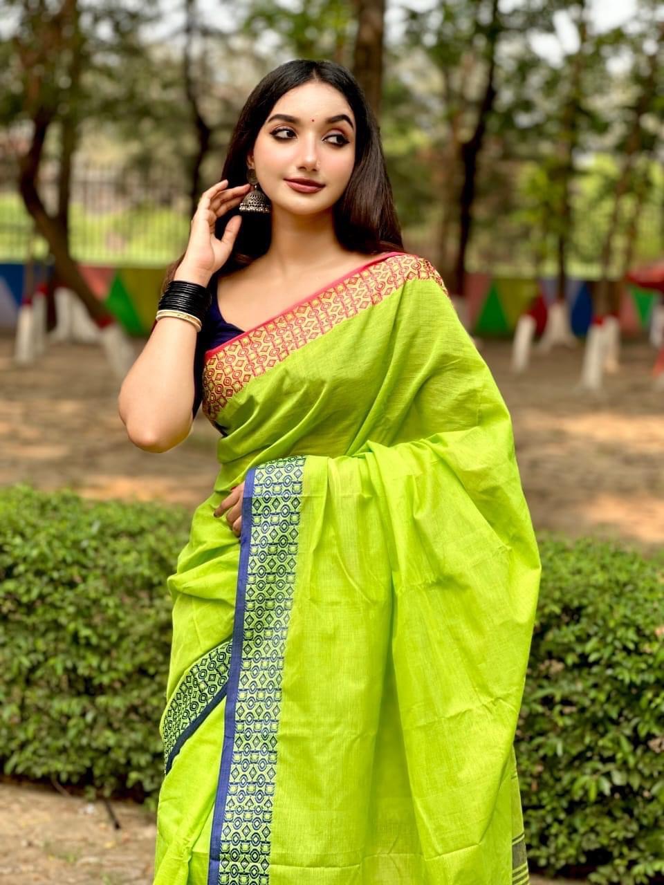 Meterial : 100% Cotton Length : 13.5 hat saree With Blouse Piece