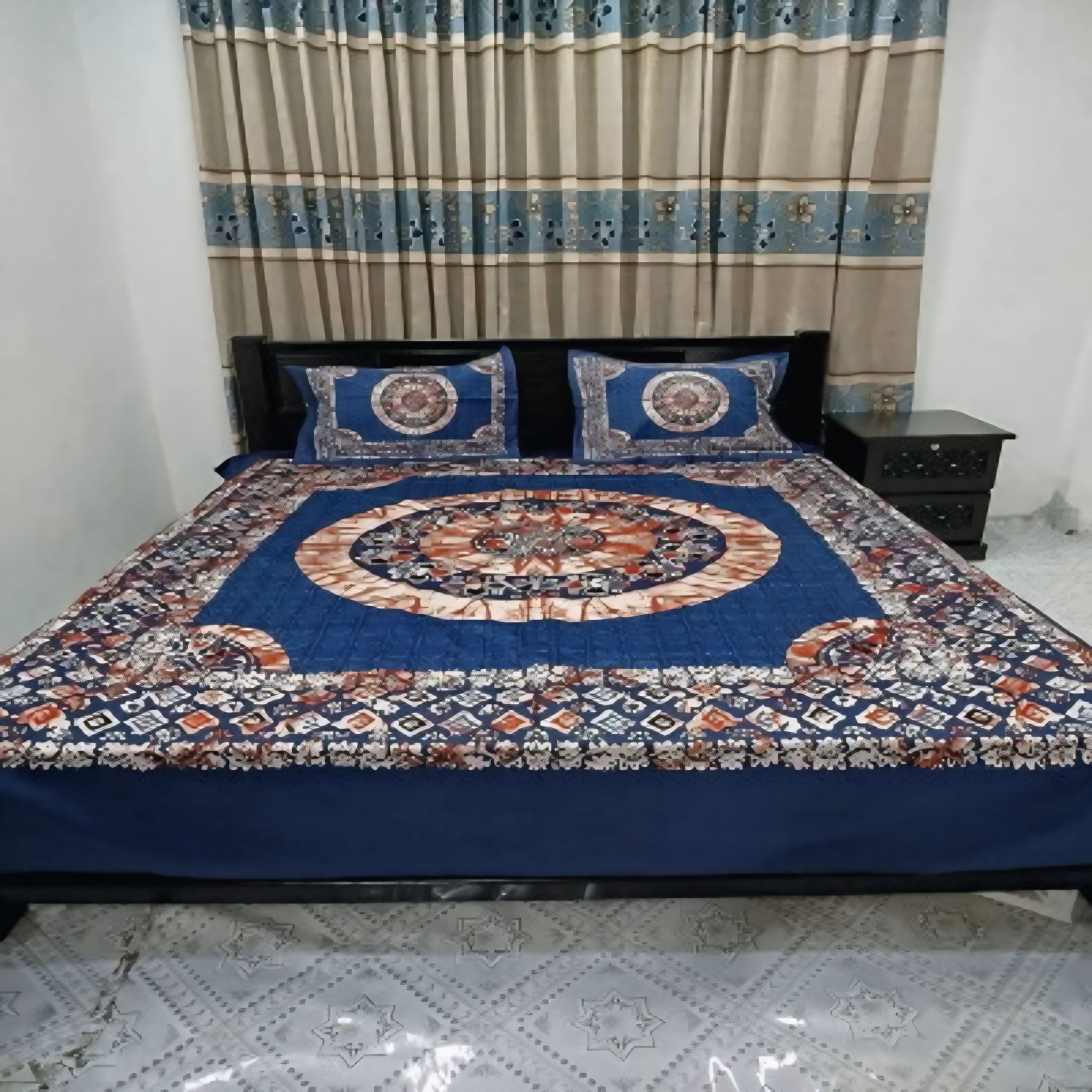Elevate your bedroom aesthetics with our Luxury Twill Cotton Bed Sheet Set. Crafted from premium-quality twill cotton, this King-size bed sheet (7.5×8.3 feet) comes with two matching pillow covers (20×36 inches). The vibrant multicolor design adds a touch of elegance and comfort to your sleeping space.