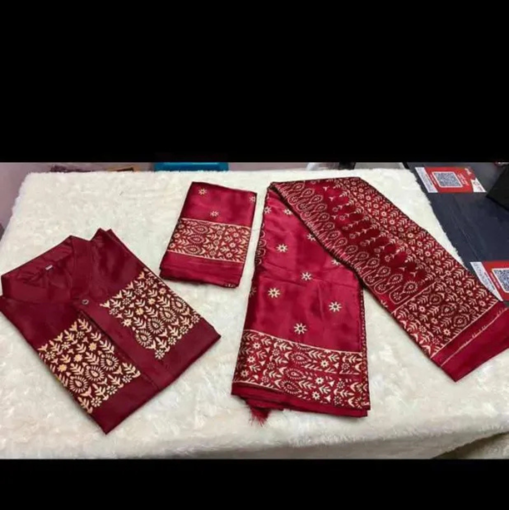 Japanese Silk Couple Dress Set – Saree, Panjabi & Blouse Piece Combo (For Men & Women)