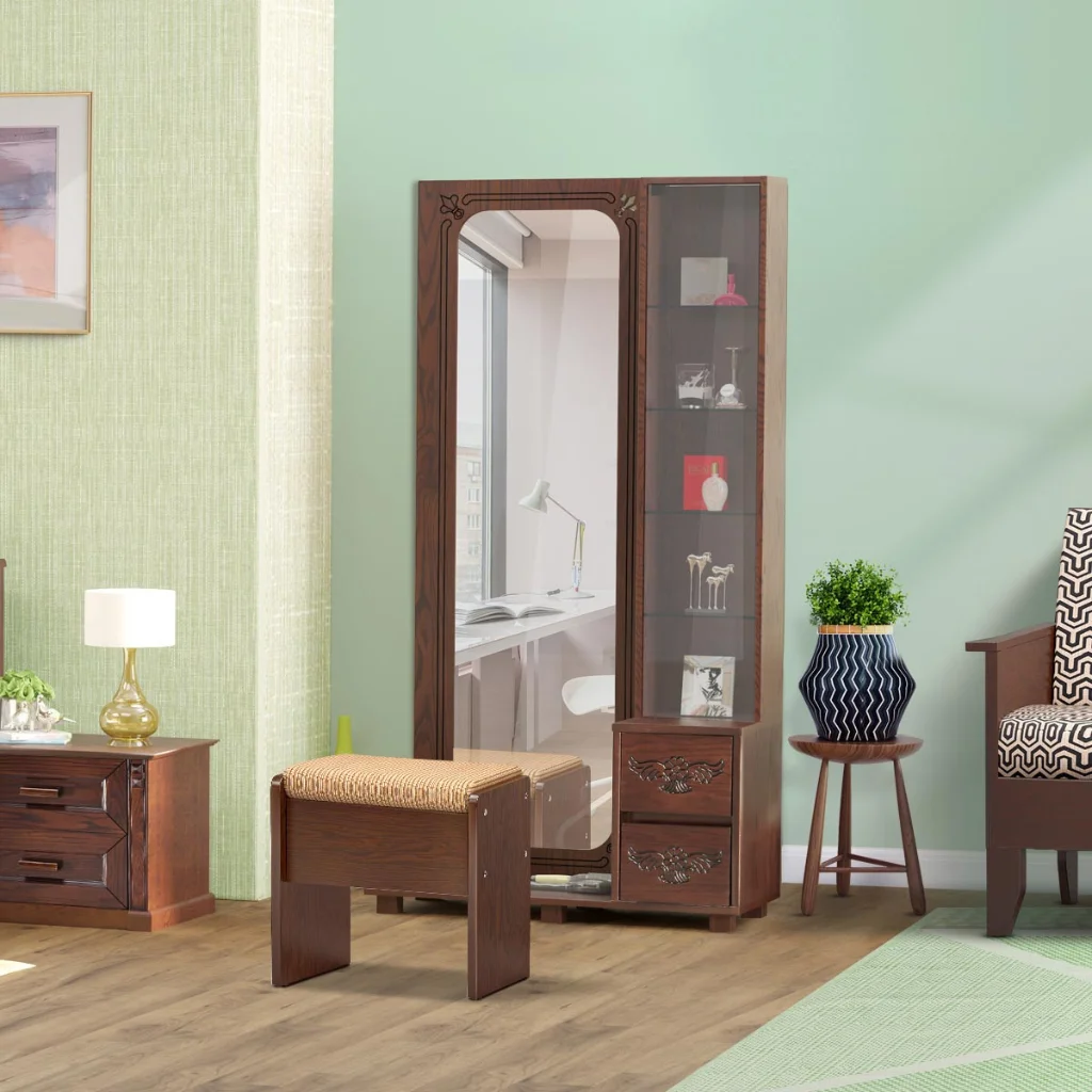 ড্রেসিং টেবিলটি টেকসই প্রক্রিয়াজাতকৃত কাঠ দিয়ে তৈরি, যা দীর্ঘস্থায়ী এবং পরিধান ও ফাটল ভালোভাবে প্রতিরোধ করতে সক্ষম