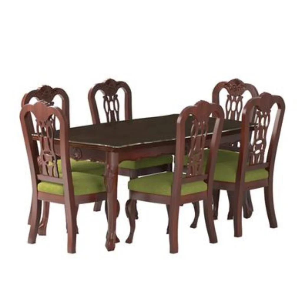 ডাইনিং টেবিলের উপরের অংশে প্রক্রিয়াজাতকৃত কাঠ ব্যবহার করা হয়