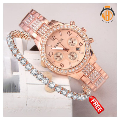 Women’s Rose Gold Quartz Watch – Waterproof & Elegant with Free Bracelet